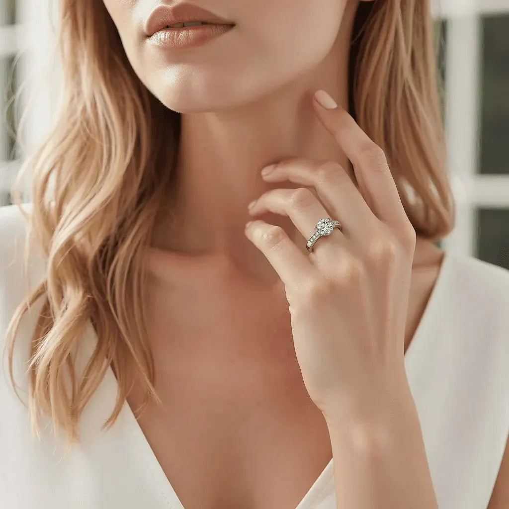 2 Carat: Six-Prong Solitaire Engagement Ring with Channel Set Band | Adorn By You - Timeless Elegance